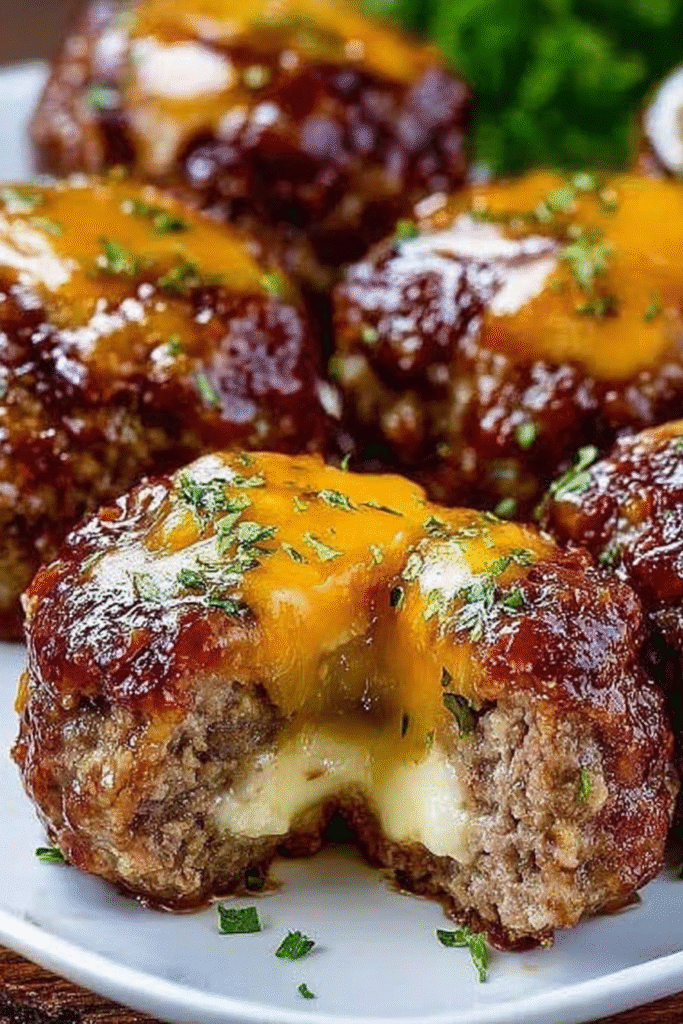 Mini fasírt falatok gooey sajtos közepekkel sütve. Tökéletes előételnek vagy családi vacsorákhoz. Ezek a sajtos...
