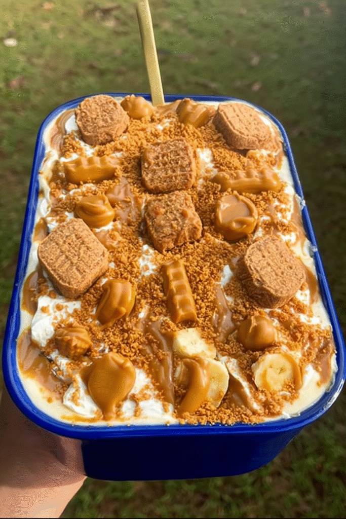 Ez a vaníliapudingos banoffee desszert a klasszikus angol banoffee pie hűtött, réteges változata, amely kekszes