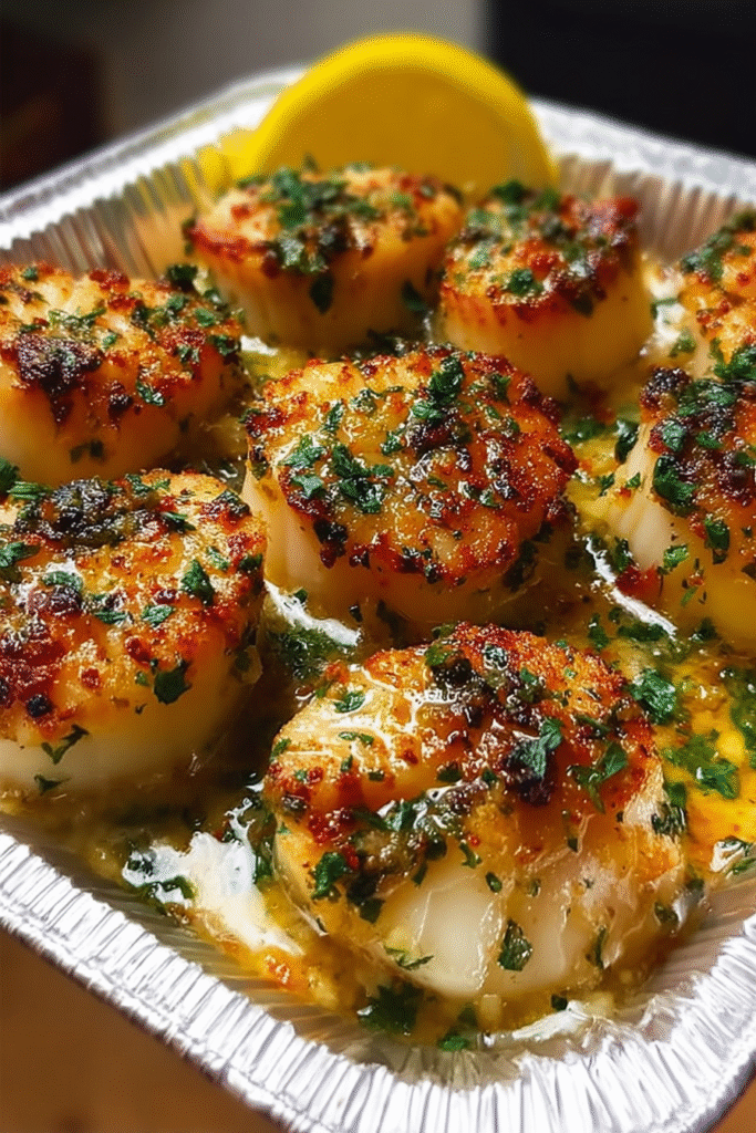 A fokhagymás vajas sült fésűkagyló egy elegáns, mégis meglepően egyszerű tengeri étel recept, amely éttermi