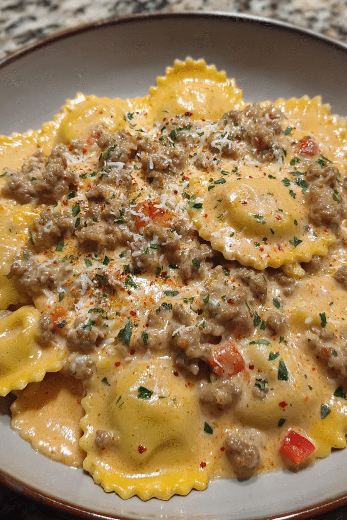 Ez a krémes cajun kolbászos ravioli a dél-amerikai Louisiana konyha fűszeres világát ötvözi az olasz tészta kényelmével. A csípős olasz kolbász, a színes paprikák és a fokhagyma aromás alapot képeznek egy gazdag, parmezános tejszínes mártásban, amelyet cajun fűszerek tesznek igazán különlegessé. A sajttal töltött ravioli tökéletesen felszívja a krémes, fűszeres
