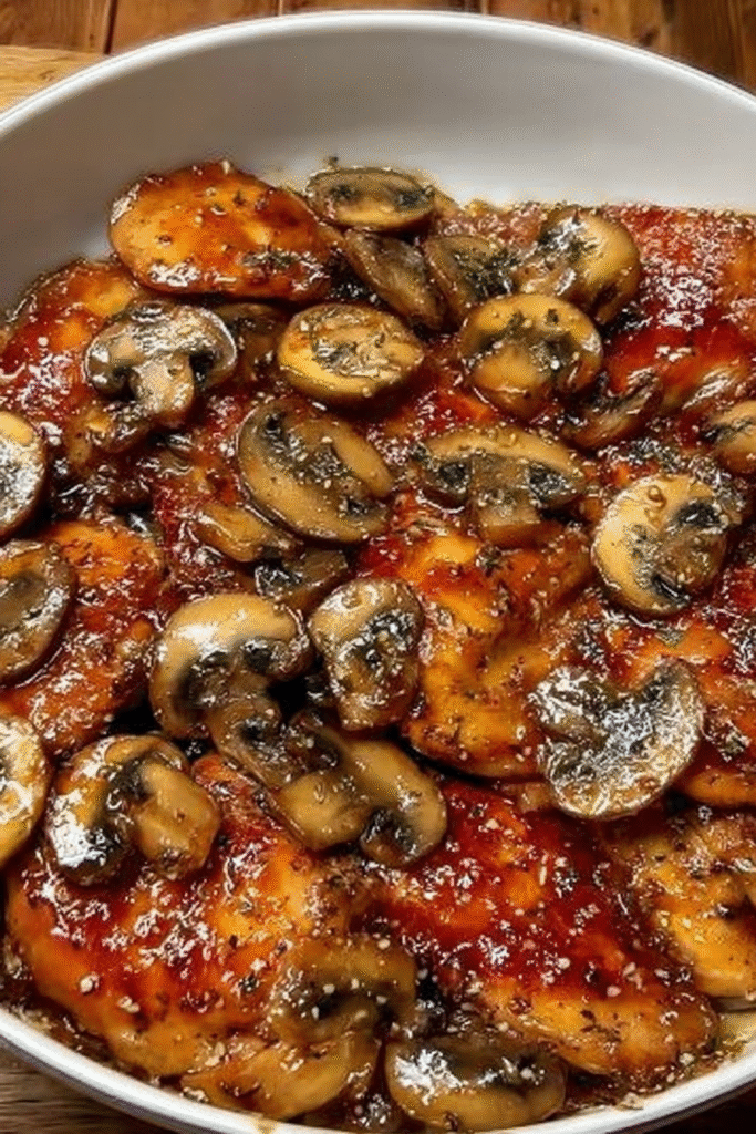 A mézes fokhagymás csirke gombával egy édes, sós és egyszerűen ellenállhatatlan vacsora, amely éttermi minőségű