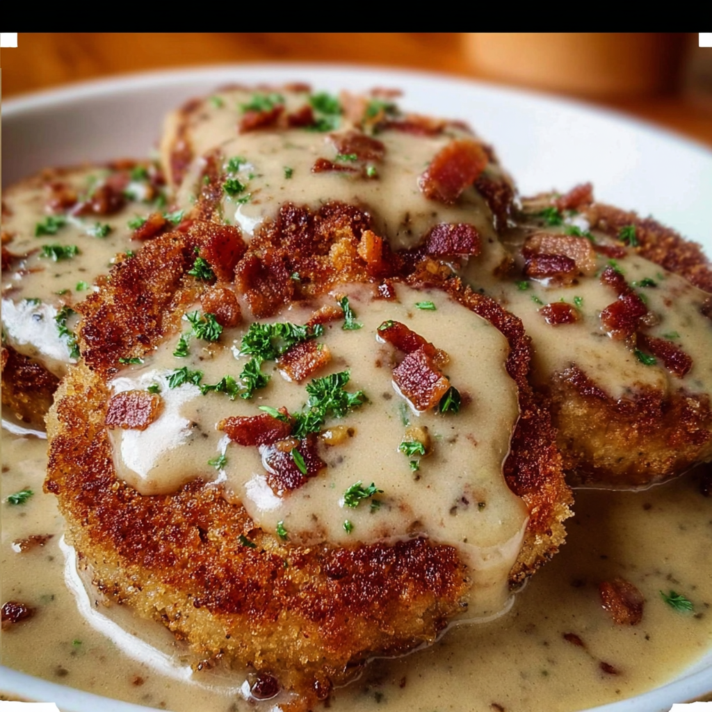 There’s something timeless about a dish that combines crispy fried pork chops with creamy bacon