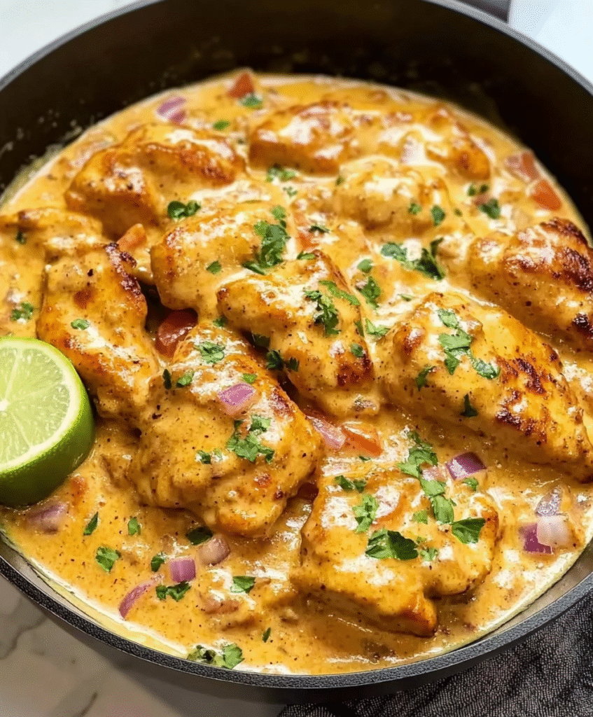 Step 7: Return Chicken Add the cooked chicken back to the pan and simmer for 5 minutes until sauce thickens slightly and chicken is heated through.