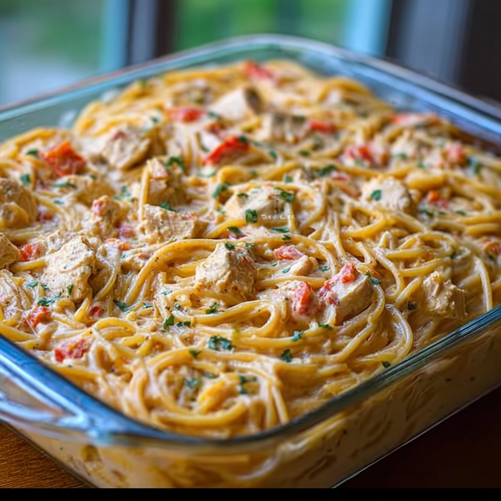 The magic of this casserole lies in its simplicity. Using a few pantry staples, you can transform basic ingredients into a dish that looks and tastes like it came from a restaurant. The creamy cheese sauce binds the spaghetti and chicken together perfectly, while the Rotel adds that unmistakable Tex-Mex flavor twist. Every bite delivers comfort, flavor, and a little bit of indulgence—all in one cheesy, gooey casserole.