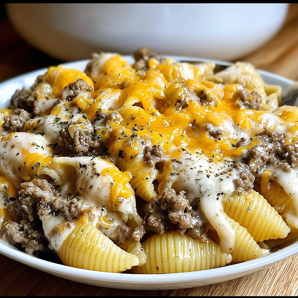 If comfort food had a personality, this Crockpot Cheesy Ranch Beef Pasta Shells recipe would be it—warm, cozy, creamy, and absolutely irresistible. This dish brings together tender pasta shells, seasoned ground beef, creamy ranch flavor, and gooey melted cheese, all slow-cooked to perfection. It’s the kind of meal that fills your home with delicious aromas and your plate with pure comfort.
