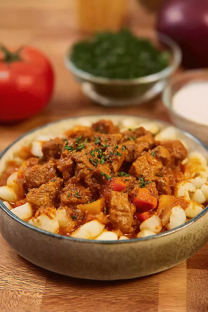 • Házi nokedli vagy galuska – A hagyományos magyar köret, amely tökéletesen felszívja a pörkölt gazdag mártását és lezárja az autentikus ízélményt.