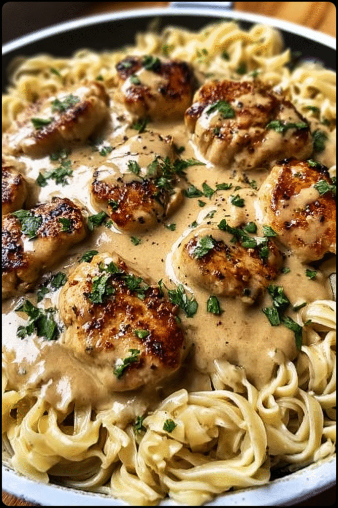 A csirke és a tészta egyesül egy luxus fokhagymás vajszószban, amelyet tejszínnel és parmezánnal dúsítottak, létrehozva egy egytálételű komfortételt, amely éttermi minőségű ízt nyújt minden falatban. Ez az étel a tészta közvetlen főzését kombinálja a szószban tökéletesen fűszerezett csirkedarabokkal, ami puha tésztát eredményez, amelyet bársonyos szósz von be, és minden elemhez tapad.