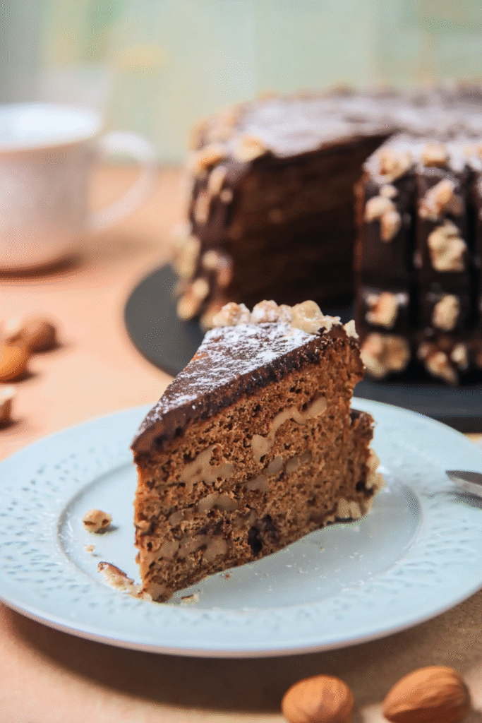 A lisztmentes diótorta tökéletes példája annak, hogyan lehet gluténmentes desszertet készíteni anélkül, hogy bármilyen kompromisszumot kötnénk az ízben vagy textúrában. Ez a recept nemcsak cöliákiások számára kiváló, hanem bárki számára, aki szereti a dió és csokoládé klasszikus, harmonikus párosítását. Bár ez egy időigényesebb, több lépésből álló recept, a végeredmény olyan lenyűgöző és finom, hogy minden perc megéri – a légies, omlós piskótarétegek és a gazdag, krémes csokoládétöltelék együttese felülmúlhatatlan ízélményt nyújt. A rusztikus megjelenés, ahol az oldalak lefedetlen maradnak, modern, otthonos karaktert ad, amely különleges, mégis barátságos. Készítse el ezt a kifinomult diótortát következő ünnepére vagy gluténérzékeny vendége fogadására, és élvezze, ahogy mindenki elragadtatással kóstolja ezt a különleges, házi készítésű remekművet!