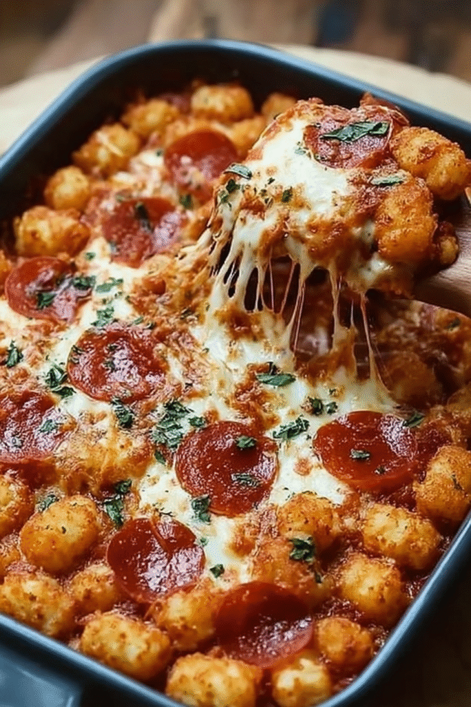 A Pizza Tot Rakott Étel egy könnyű, egytálas vacsora megoldás, amely egyesíti a pizza ízvilágát a rakott étel kényelmével. Képzelje el a ropogós burgonyakrokett rétegeket, amelyeket ízletes pizza feltétekkel és olvadó, nyúlós sajttal tetőznek meg – mindezt egy tálban sütve egyszerű, mégis kielégítő étkezésért. Ez az étel a legjobb mindkét világból, pizza ízeket kínálva praktikus rakott étel formátumban, amely tökéletes elfoglalt hétköznapokra, amikor gyors, problémamentes, mégis ízletes ételt kell az asztalra varázsolni percek alatt.