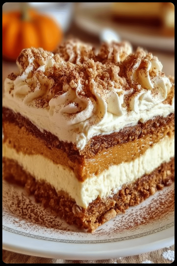 Ez a sütőtökös pite torta a hagyományos amerikai sütőtökös pite no-bake, hűtött torta formájában való újragondolása. A ropogós graham kekszes alap tökéletes alapot nyújt a krémes, fűszeres rétegeknek, amelyek sütés nélkül állnak össze légies desszertté. A krémsajtos réteg gazdag és selymes, míg a sütőtökös réteg az őszi fűszerek aromáival teli, végül egy könnyű tejszínhab korona és kakaópor díszítés teszi teljessé a látványt.